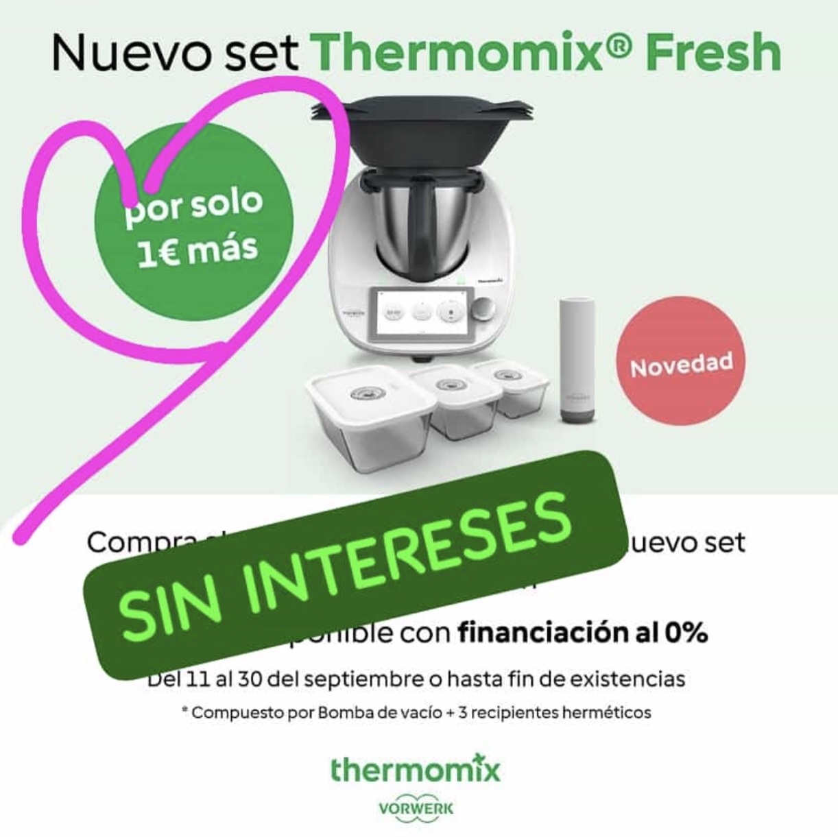 Compra ahora #THERMOMIX TM6 y llévate en exclusiva este fantástico regalo EL NUEVO SET THERMOMIX FRESH. SÓLO DURANTE UNOS DÁAS.Una envasadora al vacío con tres envases de vidrio en los que podrás guardar, conservar y congelar todo tipo de alimentos.