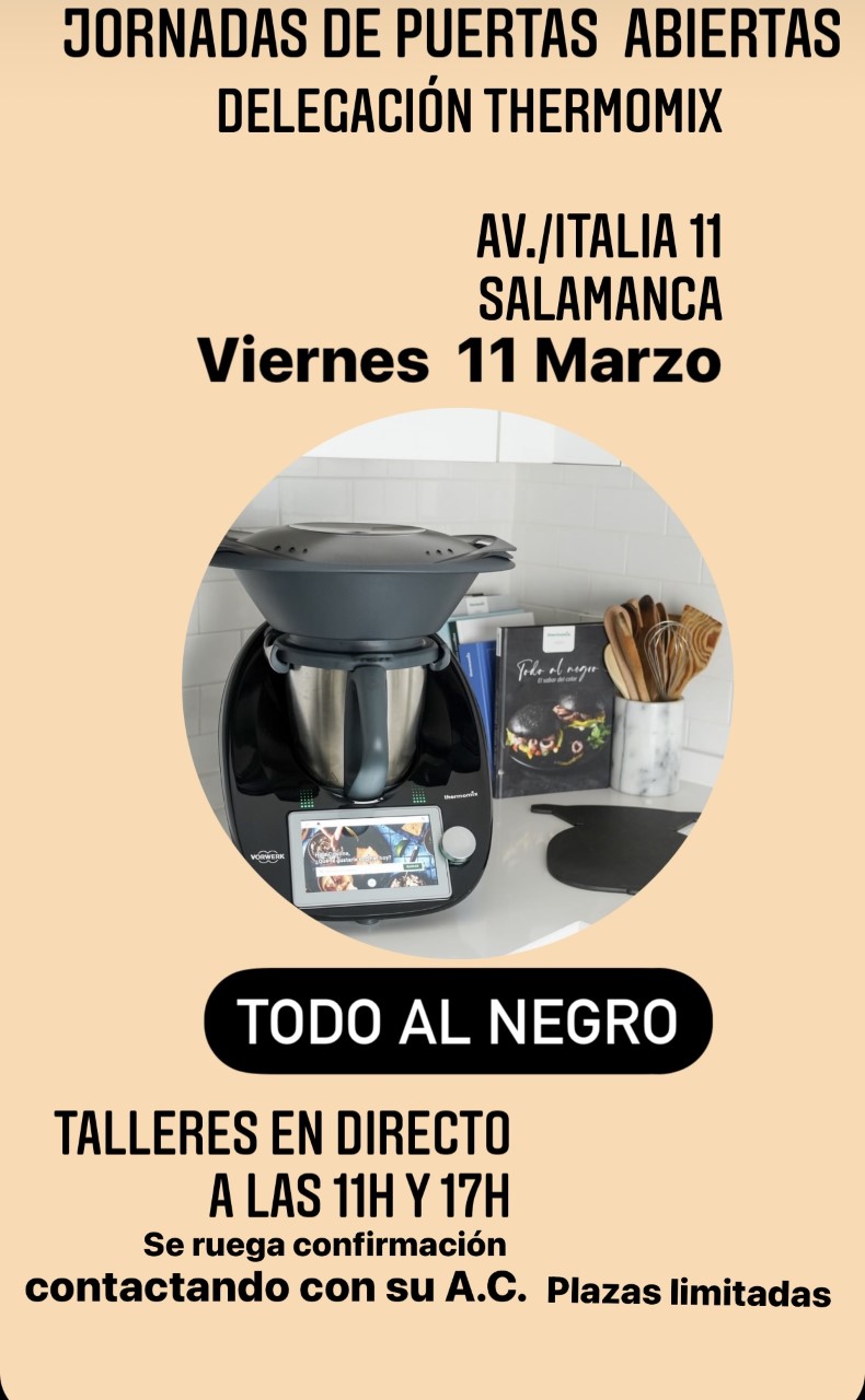 Invitación para todos los que quieran conocer el exclusivo modelo de thermomix TM6 Black, el día 11 de Marzo se harán unos TALLERES ESPECIALES con dos pases a lo largo del día : a las 11h y 17h. Y además durante todo el día estaremos con una Jornadas de Puertas Abiertas, por lo que podéis pasar desde las 10h hasta las 19H , allí estaremos para recibiros .