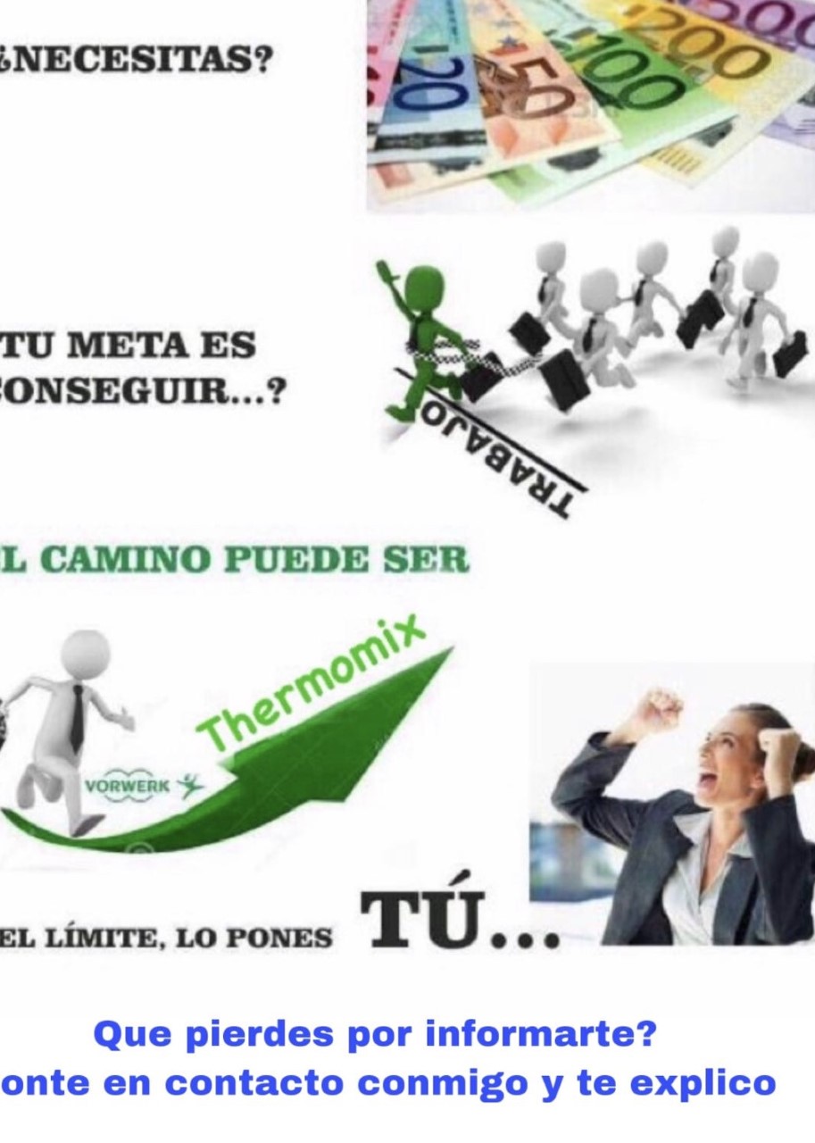 Consigue un Thermomix GRATIS y si te gusta quédate con nosotros y crece profesionalmente con el respaldo de una gran empresa, compaginándolo con tu vida familiar. Podrás decidir cuándo y cuánto tiempo trabajas. Jornada completa o parcial, lo que tu prefieras.