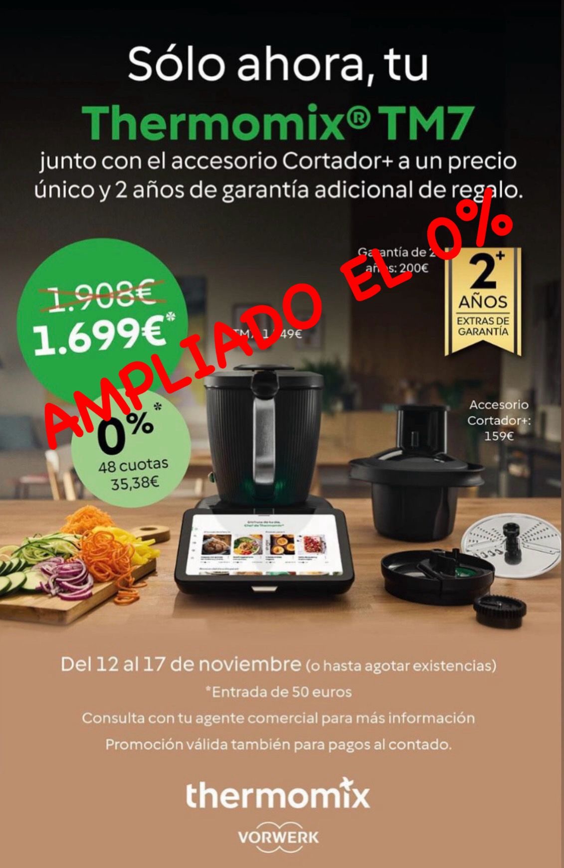 PROMOCIÓN THERMOMIX TM7 0%,CORTADOR Y 2 AÑOS MÁS DE GARANTÁA